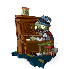 特点:召唤牛仔僵尸舞者,穿梭于不同道路 钢琴僵尸只会两支曲子,两首都是口哨独奏。